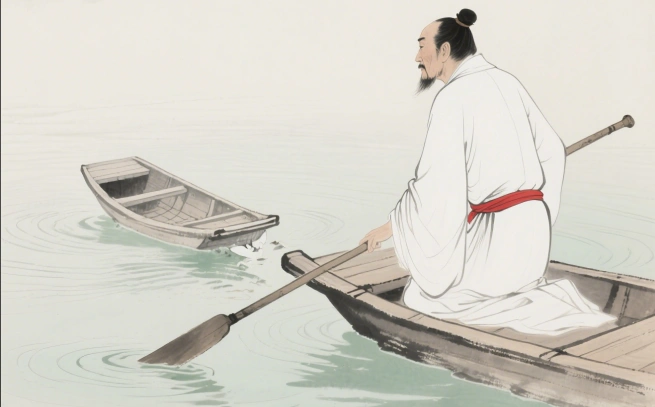 《庄子·山木》中讲了一则故事,庄子在乘船渡河时,看到前方有一艘船即将撞过来;他大声呼喊,但是没有人应答,于是他感到非常生