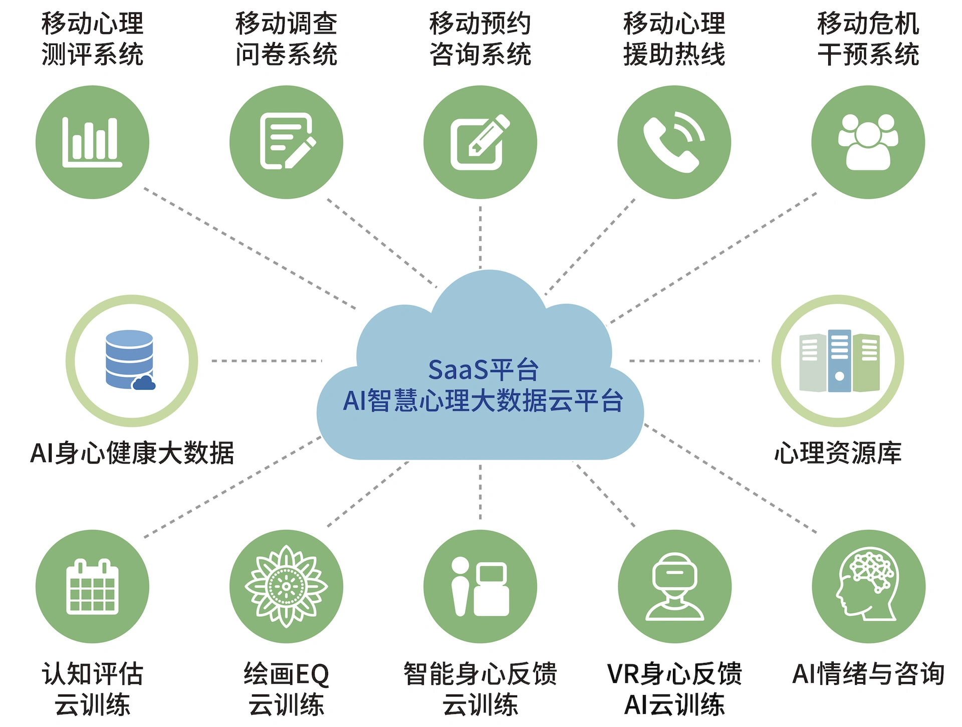 智慧心理大数据云平台集AI情绪识别、心理测评、问卷调查、预约咨询、心理辅导与危机干预、心理素质提升训练、心理资源库等多功能于一体,满足学校建立“一生一策”心理成长档案,便于单位汇集身心健康大数据,为科学、全面开展心理健康工作提供技术支持和核心依据。